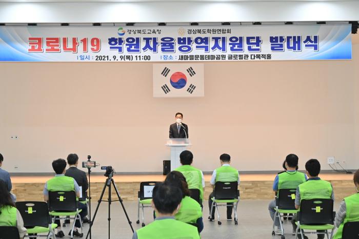 학원자율방역지원단은 경상북도학원연합회 임상철 회장을 단장으로 17개 시·군 연합회 분회별로 구성·운영하며, 학원 내 코로나19 감염 예방의 민관 협력 차원에서 학원연합회가 자발적으로 구성한 단체이다.