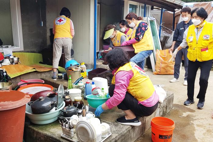 대한적십자사봉사회 청송군지구협의회는 지난 9일 태풍 ‘오마이스’로 피해를 입은 청송군 현서면 노인가구에서 봉사활동을 펼쳐 귀감이 되어 주었다.