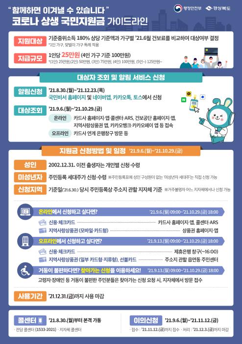 경상북도(도지사 이철우)는 13일부터 코로나 상생 국민지원금 오프라인 신청이 시작된다고 밝혔다.
