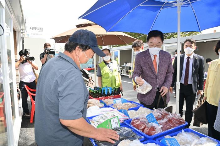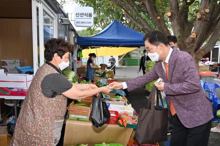 이날 추석맞이 장보기 행사에 참여한 임종식 교육감을 비롯한 본청 직원은 코로나19 재확산 방지를 위해 코로나 백신 접종 완료자를 대상으로 소그룹으로 나눠 사회적 거리두기에 따른 방역 수칙을 준수하면서 장보기를 했다.