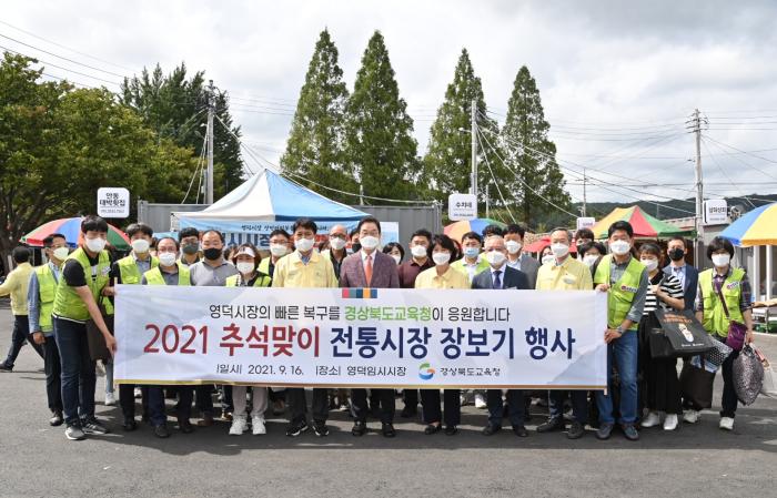 경북교육청은 16일 영덕 임시시장(구, 야성초등학교)에서 민족 고유의 명절 추석을 앞두고 지역사회에 따뜻한 온정을 나누고 지역경제 활성화를 위해 추석맞이 장보기 행사를 가졌다.