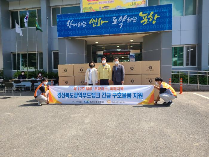 경상북도와 경상북도광역푸드뱅크(회장 이상근)에서는 15일 제12호 태풍 “오마이스”로 큰 피해를 입은 포항 죽장면에 긴급 푸드팩 700세트를 지원했다.