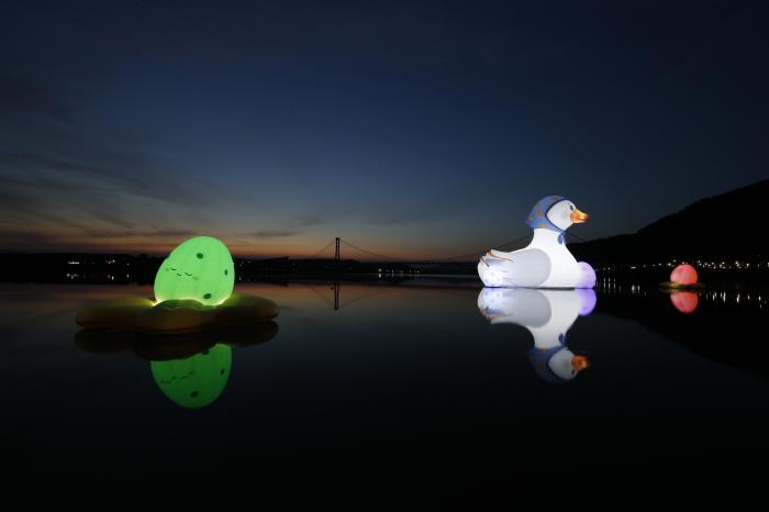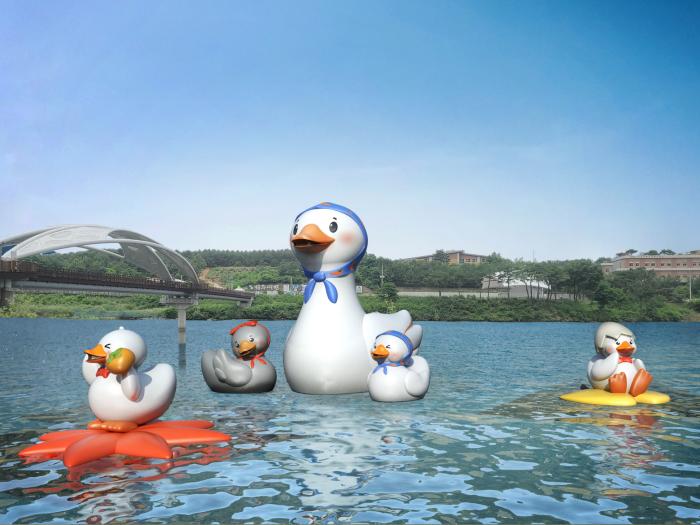 낙동강 수상에 길이 19.5m, 높이 16.2m 규모의 초대형 엄마 오리와 알에서 부화한 새끼오리 4마리가 전시되며, 조명을 설치해 야간에도 아름다운 경관을 즐길 수 있다.