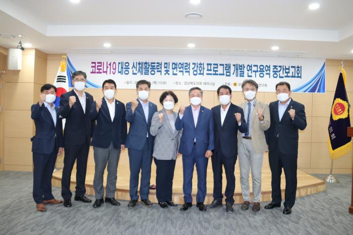 경북도의회 의원연구단체인 경상북도 코로나대응방안연구회(대표 이동업 의원, 포항)는 30일 도의회 세미나실에서 ‘코로나19 대응 신체활동력 및 면역력 강화 프로그램 개발 연구용역’ 중간보고회를 개최했다.