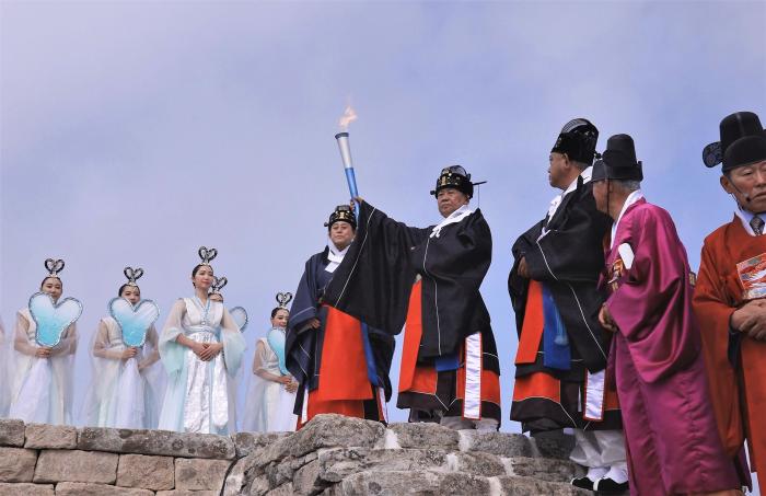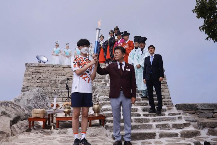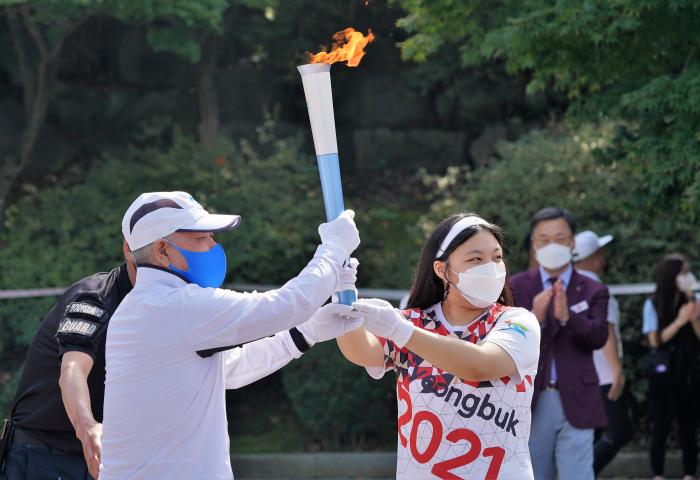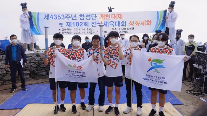 이날 봉송이 시작된 성화는 개천절에 민족의 영산인 강화 마니산 참성단(전국체전)과 구미 금오산(장애인체전)에서 각각 채화된 불꽃으로 체전 개최지역을 돌면서 희망의 메시지를 전달할 계획이다.