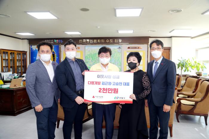 다영개발 김근영⋅고승현 대표 모자(母子)가 9월 30일 시장실에서 이웃돕기 성금 2천만 원을 안동시에 전달했다.