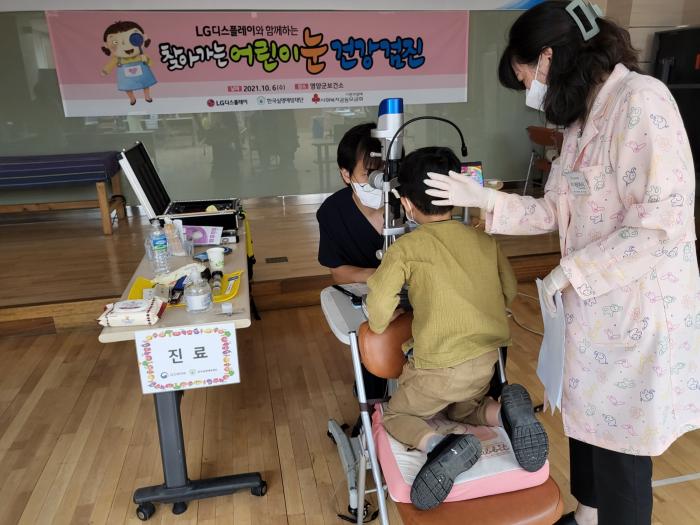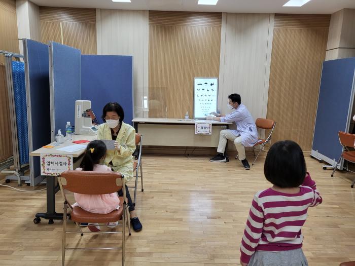 이번 검진은 만3세~6세 어린이 200명을 대상으로 시력검사, 자동굴절검사, 입체시 검사, 안저촬영검사 등 소아안과 전문의 정밀검진으로 상급종합병원에 준하는 안 검진으로 이루어졌다.