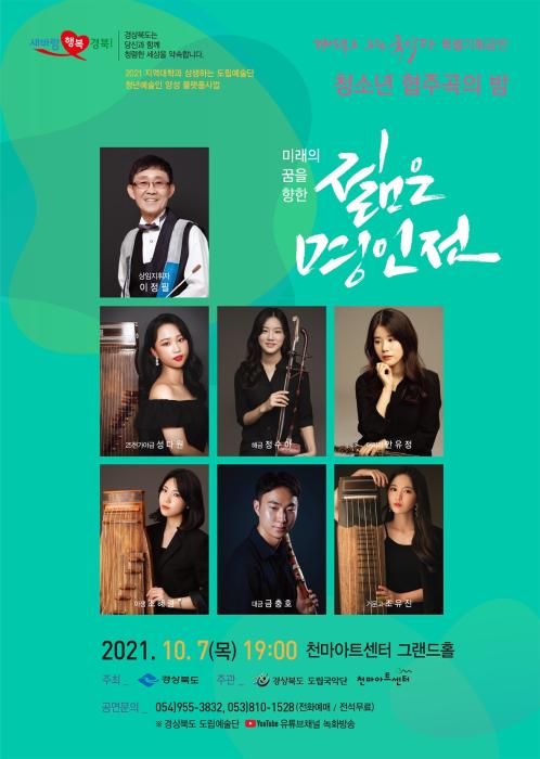 경상북도는 7일 저녁 7시 영남대학교 경산캠퍼스 천마아트센터에서 ‘미래의 꿈을 향한 젊은 명인전’을 공연한다.