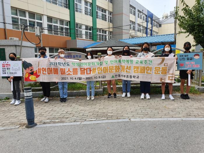안동시 안동서부초등학교는 10월 6일(수)∼7일(목) 2021학년도 학생언어문화개선 및 언어폭력예방 캠페인을 실시했다.