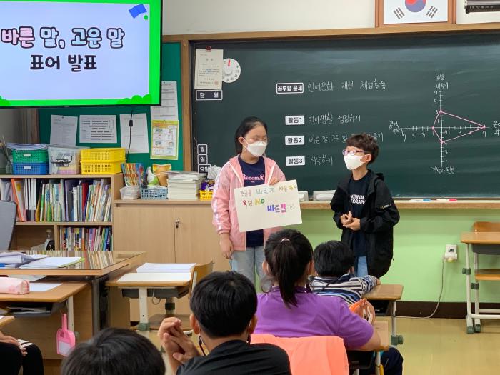 전교학생회 임원 6학년 김○○ 학생은 “우리가 사용하는 말은 우리의 마음을 담는 그릇인 것 같아요. 학생들이 아름다운 우리말을 사용하여 아름다운 우리말도 지키고 마음도 착해지면 좋겠어요.”라고 소감을 말했다.