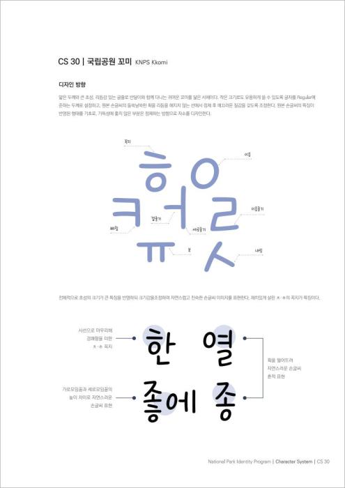 국립공원 캐릭터 글꼴은 ‘국립공원 「반달이와 꼬미」 손글씨 공모전(2020년) 수상작’을 바탕으로 개발한 글꼴로써, 듬직한 반달이를 형상화한 국립공원 반달이체와 귀여운 꼬미를 형상화한 국립공원 꼬미체 총 2종으로 이루어져 있다.