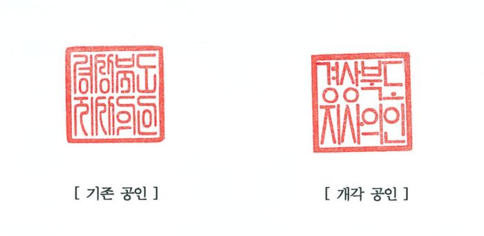 이철우 경북도지사는 “관인은 누구나 알아볼 수 있고 소통이 가능해야 한다는 기본 원칙에 따라 공인을 변경하게 됐다”라며, “한글 훈민정음체로의 공인 개각을 시작으로 경북의 한글 사랑 전통을 이어 대한민국 대표 문화콘텐츠로 육성하겠다”라고 말했다. (업무부서/자치행정과 054-880-2861)