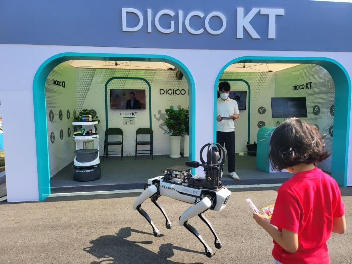 특히 KT 홍보관에 설치된 사족보행 로봇과 휴먼로이드로봇 알파프로의 태권도 시연 및 댄스공연은 한글날 연휴를 맞아 홍보관을 찾은 어린이 관람객들의 발길을 사로잡았다.