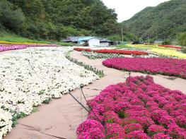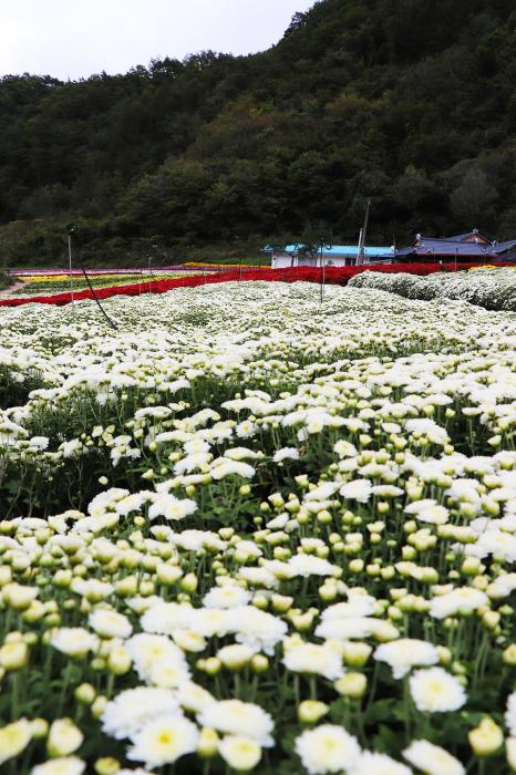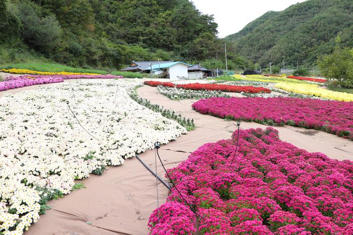 안동시가 예안면 도촌리에 마을 만들기 사업의 일환으로 조성한 약 10만 여본 규모의 국화단지가 가을 여행객들의 찬사를 받고 있다.