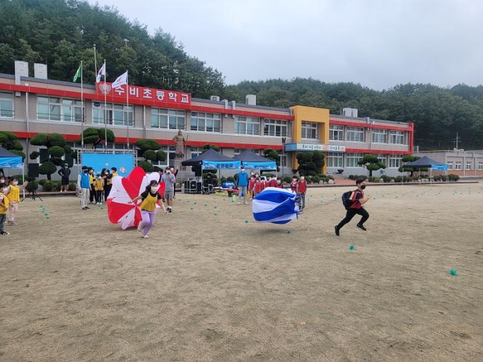 영양군 수비초등학교는 2021년 10월 13일(수) 코로나19로 인해 야외체육활동이 제한된 상황이지만 움직이는 체육관 ‘스포츠 버스’를 통하여 안전하고 즐거운 작은 운동회를 실시했다.