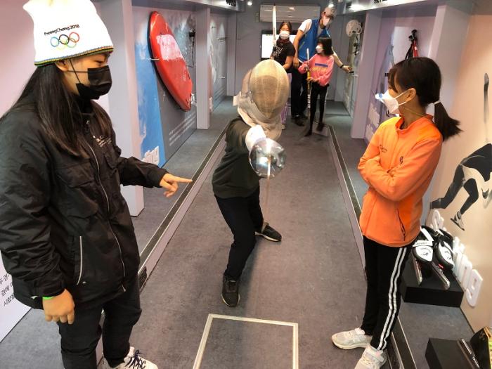 아침부터 수비초등학교 전교생과 병설유치원생들은 체온측정과 손소독을 실시한 후 운동장에 모여 본격적으로 체험을 시작하였다. 운동장에는 다양한 스포츠 활동을 경험할 수 있도록 프로그램들이 구성되어 있었다. 실제 버스에 탑승하여 다양한 스포츠에 사용되는 여러 장비를 직접 만져보고 착용해보며 신기해하는 학생들이 눈에 띄었다. 옆에는 인기 종목 체험존, VR 체험존이 마련되어 대중에게 인기가 많은 스포츠 종목을 체험하며 신이 난 학생들로 북적하였다. 특히 드론 축구존의 인기가 많아 학생들이 제법 긴 줄을 형성하였다. 끝에는 문화체험 프로그램을 체험하는 학생들은 휴대용 손소독제, 연만들기에 집중하고 있었다.