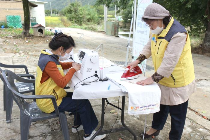 이날 바르게살기협의회, 행복나눔집수리봉사단, 한국수자원공사청송권지사, 재봉틀전문자원봉사단 등 4개 자원봉사단체 20여명의봉사자들은 태풍 ‘오마이스’ 피해를 입어 힘들어 하는 가구를 방문해 전기·보일러 점검, LED등 교체, 에너지절약 창틀·문틀 바람막이 설치, 이불세탁, 수제장독커버 제공 등의 활동을 펼쳤으며, 특히 코로나19 감염상황을 감안하여 방역수칙을 철저히 준수한 가운데 재능 나눔을 실천했다.