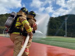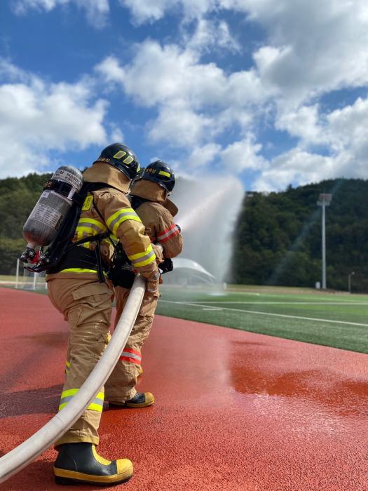 특히 이번 훈련에서는 △가상화재출동 △소방호스 전개 및 방수 △인명구조 및 이송 △소방호스 별 방수시간 및 비거리 측정 등을 진행했다.