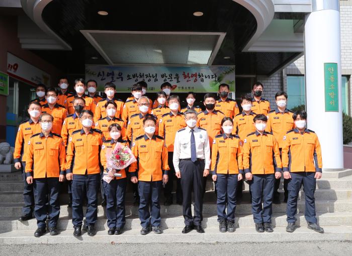 (안동119=경북온뉴스) 김승진 기자 = 신열우 소방청장이 지난 21일 안동시 임동면 망천리 일대 발생한 대형 산불 진압에 힘쓴 직원들을 격려하고자 26일 안동소방서를 방문했다.