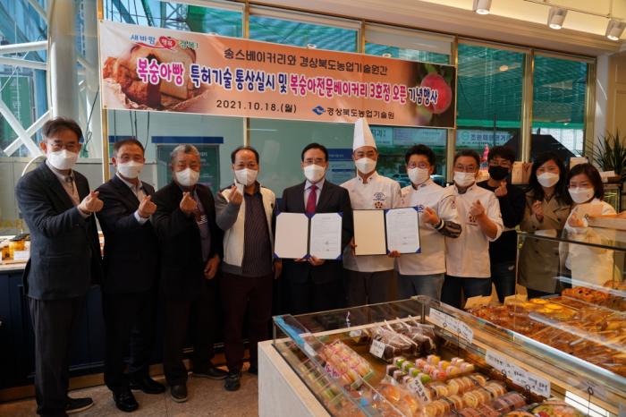 경상북도농업기술원은 국산 복숭아토종효모 및 가공연구 개발을 통해원천 특허기술을 산업체에 기술이전 통상실시 계약 체결식과 복숭아전문베이커리 2~6호점 오픈 기념행사를 실시한다고 밝혔다.