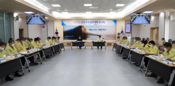 이날 보고회에서는 2021년 주요성과와 마무리할 사업들을 점검하고, 2022년도 주요정책에 대한 중점 추진방향을 토론하며 포스트 코로나를 대비하여 적극적이고 혁신적인 군정 운영을 위한 구체적 방안을 모색했다.