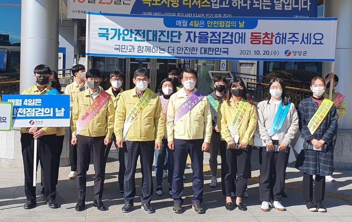 영양군은 10월 20일(수) 오후 2시에 영양군청 공무원 등 관계자 30여 명이 참석한 가운데 국가안전대진단 민간 자율참여 독려를 위해 ‘제298차 안전점검의 날 행사’와 병행하여 추진했다.