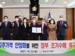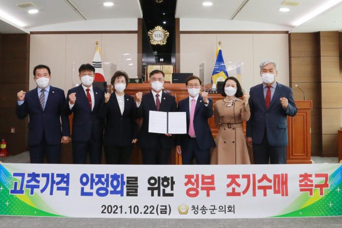 특히 ‘고추 가격 안정화를 위한 정부 조기수매 촉구 건의문’을 전의원 공동 발의하여 고추가격 폭락으로 어려움을 겪고 있는 재배 농가에 대한 정부차원의 대책 마련과 조기 수매를 강력하게 촉구하고 건의문을 의결했다.