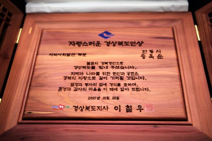 경상북도는 22일 오전 도청 화백당에서 '2021년 자랑스러운 경상북도민상 시상식'을 개최했다.