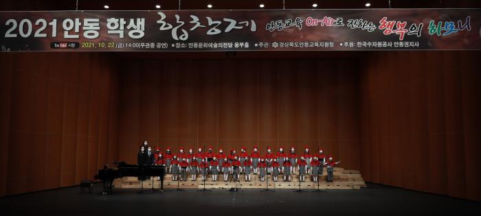 경상북도안동교육지원청은 바르고 고운 심성을 함양하여 학교폭력예방에 기여하는 것을 목적으로 ‘2021 안동 학생 합창제’를 2021년 10월 22일(금)에 안동문화예술의전당 웅부홀에서 개최했다. 공연 참가학교는 관내 초·중·특수학교 총 8개교이다.