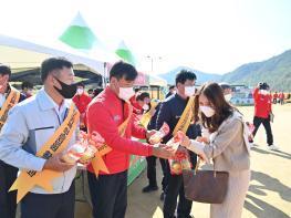 특히 폐장일인 10월 24일에는 “아듀! 청송정원 2021!, 황금사과 나눔 한마당” 행사도 열렸다. (사)한국농업경영인청송군연합회(회장 곽동주)가 주최한 이번 행사는 코로나19 방역수칙을 철저히 준수한 가운데 ‘산소카페 청송정원’ 개장 성과와 청송농업을 돌아보기 위해 마련되었으며, 관광객들에게 황금사과 나눔 행사, 한농연 가족 한마음 단결대회, 지역향토가수 버스킹, 산소카페 청송정원 사진전시 등으로 간소하지만 의미 있는 프로그램으로 진행되었으며, (사)한국여성농업인청송군연합회(회장 최상희)에서 쌀 소비촉진을 위한 우리 쌀 떡나눔 행사도 함께 진행했다.