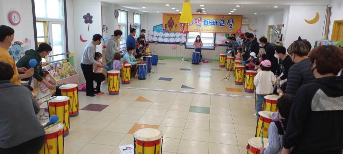 올해는 1차로 23일 칠곡군 어린이집에서 아빠-자녀 20팀(40명)이 참여한 가운데 ▷음악놀이 ‘둠치타 놀이터’ ▷목공놀이 ‘캄포도마 만들기’ ▷‘자기주도적 학습법’강의를 구성해 진행됐다.