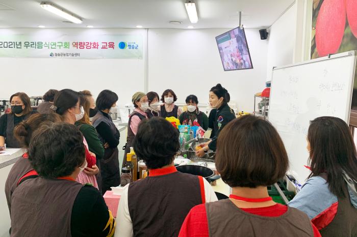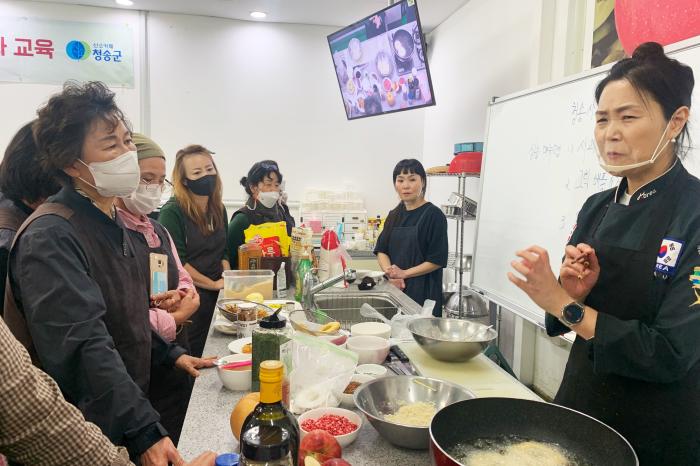 청송군은 청송군농업기술센터에서 우리음식연구회원을 대상으로 지역특화식품개발 활성화 사과요리교육을 실시했다.