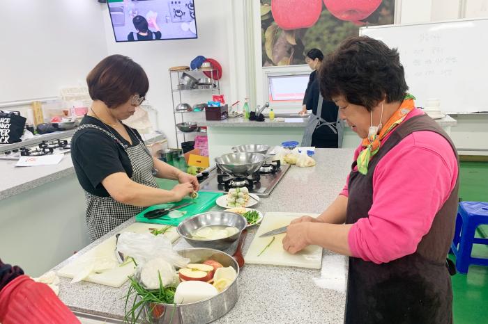 교육에 참가한 회원들은 도시 브랜드 ‘산소카페 청송군’의 이미지와 부합되는 사과요리를 주제로 사과롤 물김치, 사과 아보카도 월남쌈, 멘보사과 등 일상생활 속에서 쉽게 만들 수 있는 메뉴 9가지를 배우며 알찬 시간을 보냈다.