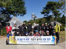 경상북도안동교육지원청(교육장 김동욱)은 10월 23일(토) 사제동행연합 자전거 동아리 회원은 영산강자전거길(죽산보-느러지 관람전망대-영산강하구둑) 57Km를 라이딩했다. 이로써 담양댐 인증센터에서 영산강 하구둑까지 총 133Km의 거리를 완주했다.