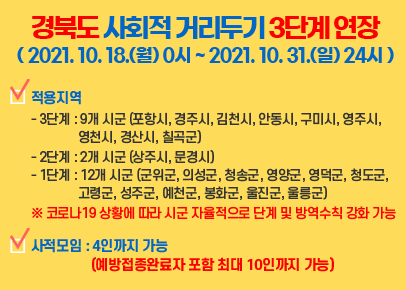 경상북도는 내달 1일부터 도민의 70%가 코로나19 백신접종을 완료함에 따라 단계적 일상회복 준비를 위한 환자관리 체계를 전환한다고 28일 밝혔다.
