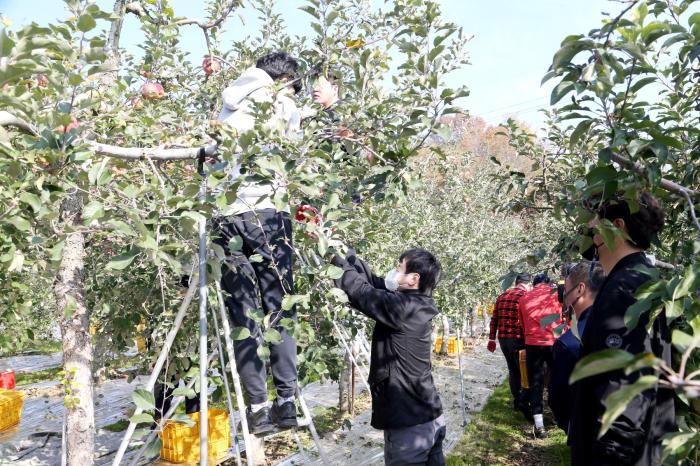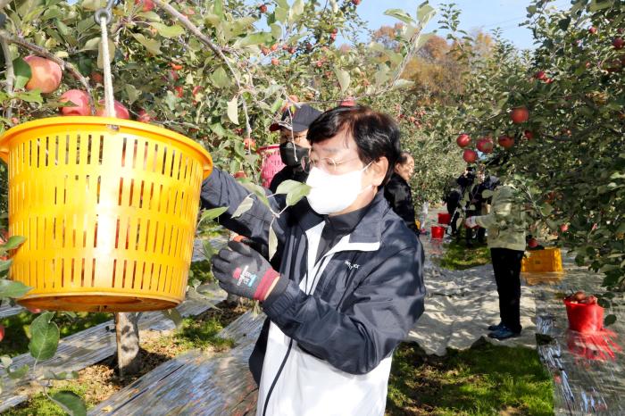 권영세 안동시장은 11월 3일 와룡면 태리 사과농가를 방문해, 수확철 일손돕기에 나섰다. 이날 농촌일손돕기에는 시청 직원들과 농협은행 안동시지부(지부장 배준호)에서 함께했다.