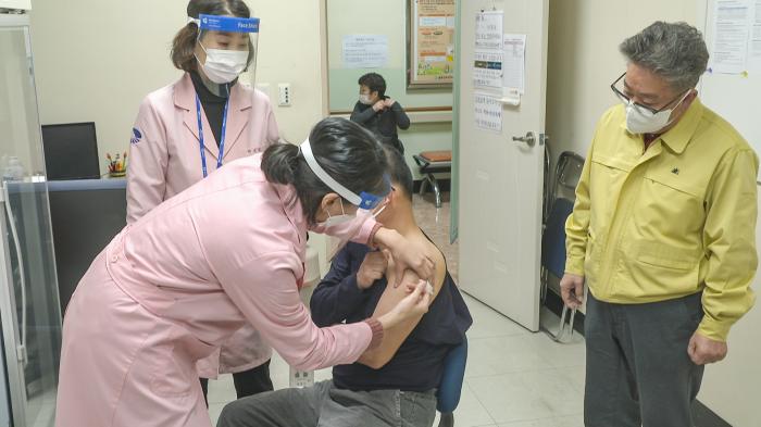 예방접종은 정부 방침에 따라 집단감염에 취약하고, 감염 시 치명률이 높은 노인요양병원 및 노인요양시설 종사자 및 입소자 중 동의자를 대상으로 시행되며, 1차 접종대상자는 요양병원을 포함해 총33명이다.