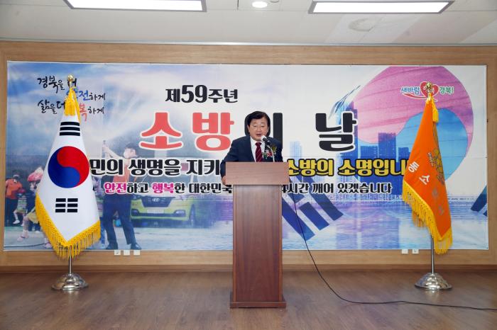 권영세 안동시장은 11월 9일, 안동소방서 대회의실에서 열린 '제59주년 소방의 날 기념식'에 참석해 코로나19를 비롯한 각종 재난 현장의 최일선에서 묵묵히 소임을 다하는 소방공무원, 의용소방대원들의 노고에 깊은 감사를 전했다.