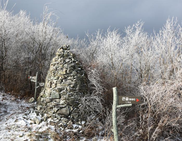 영양군 일월산지에 10일 오전 첫 눈이 내렸다.