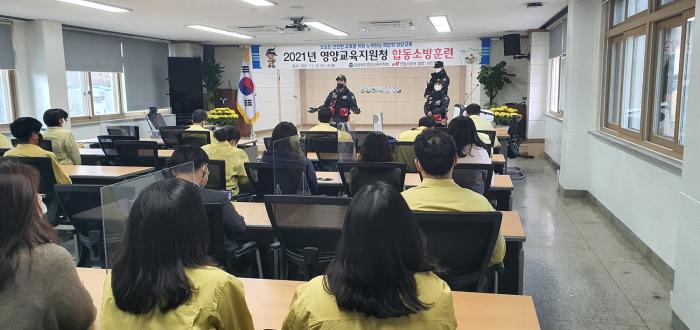 영양교육지원청은 매년 2회 이상 소방훈련을 통해 인명피해 및 재산피해를 줄이기 위해 노력하고 있다.