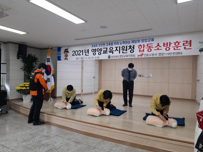 영양교육지원청은 지난 10일(수) 청 전 직원이 참석한 가운데 영양119안전센터와 합동소방훈련을 실시했다.