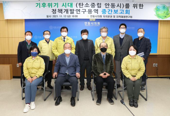 안동시의회 자치분권 및 지역재생연구회는 이달 12일 의회청사 2층 회의실에서 ‘기후위기시대 탄소중립 안동시를 위한 바이오매스 활용 탄소흡수마을 기본계획 정책연구용역 중간보고회’를 개최했다.