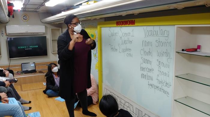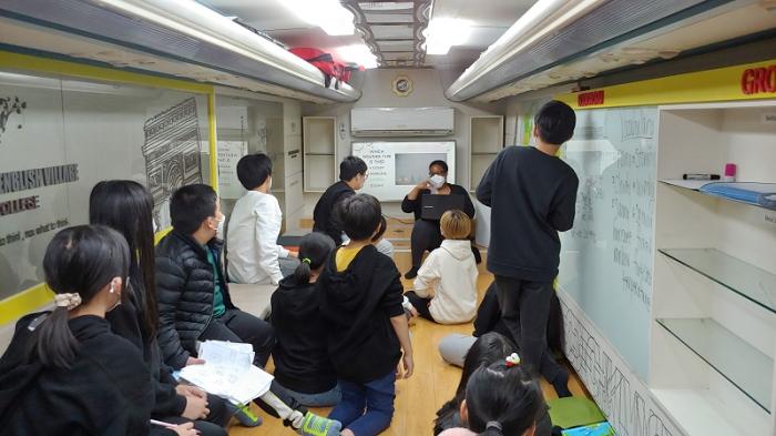 영어체험학습은 두 파트로 나누어 실시를 했다. 4학년은 대구경북영어마을의 Fun English bus에서 원어민 선생님과 5, 6학년은 영어실에서 원어민 선생님과 함께 자신의 영어 이름을 정해 익히는 게임을 시작으로 영어 체험 학습이 시작되었다. 학생들은 게임에서 틀리면 ‘와’라며 아쉬움을 표했다. 게임과 함께 학생들은 영어로 진행하는 수업을 즐겼다.