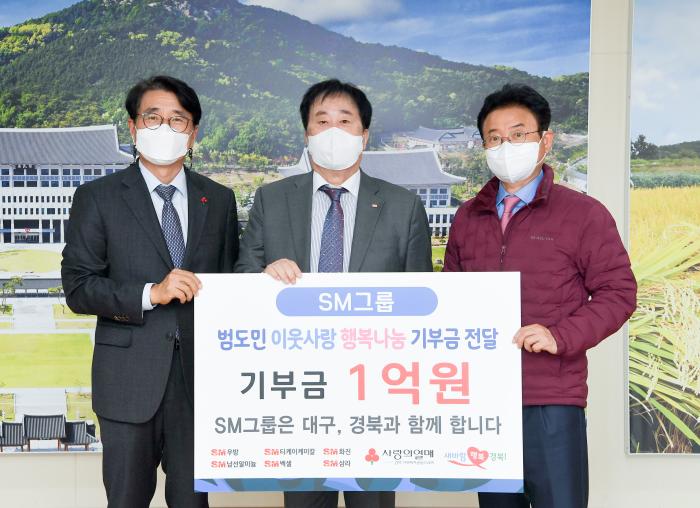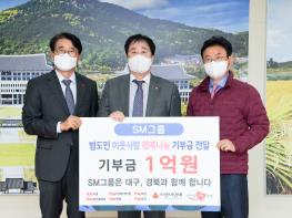 SM그룹은 평소에도 연말연시 이웃돕기 성금 전달 등 지역사회의 크고 작은 어려움이 있을 때마다 나눔을 통해 기업의 사회적 책임을 실천하고 있다.