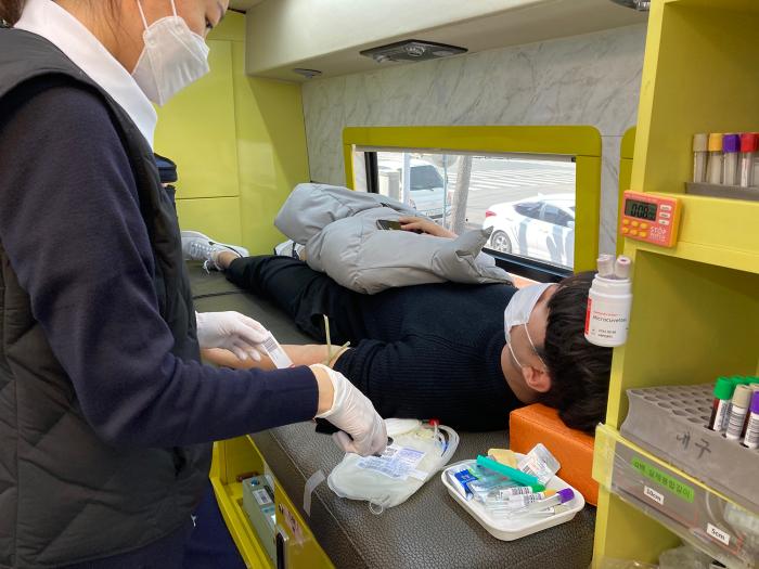 적십자 헌혈버스와 함께하는 헌혈릴레이는 채혈 시 코로나19 감염예방을 위해 발열체크, 손 소독, 거리두기 유지 등 방역수칙 준수에 만전을 기하여 안심하고 헌혈에 참여할 수 있도록 한다.