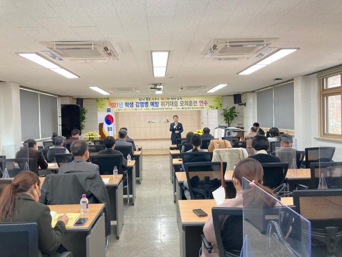 경상북도영양교육지원청(교육장 이경)는 11월 22일 영양교육지원청 대회의실에서 관내 초·중·고 교감 및 보건(담당)교사, 교육지원청 보건업무담당자 등 30여명을 대상으로 학교 감염병 예방 위기대응 모의훈련을 실시했다.