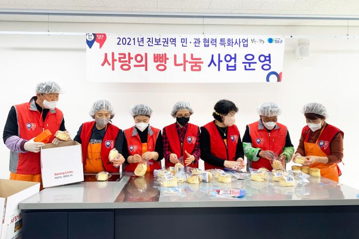 청송군 진보면 디딤돌지역사회보장협의체(민간위원장 윤도석)가 지난 11월 20일(토) 민‧관협력 특화사업으로 “사랑의 빵 나눔” 봉사를 실시했다.