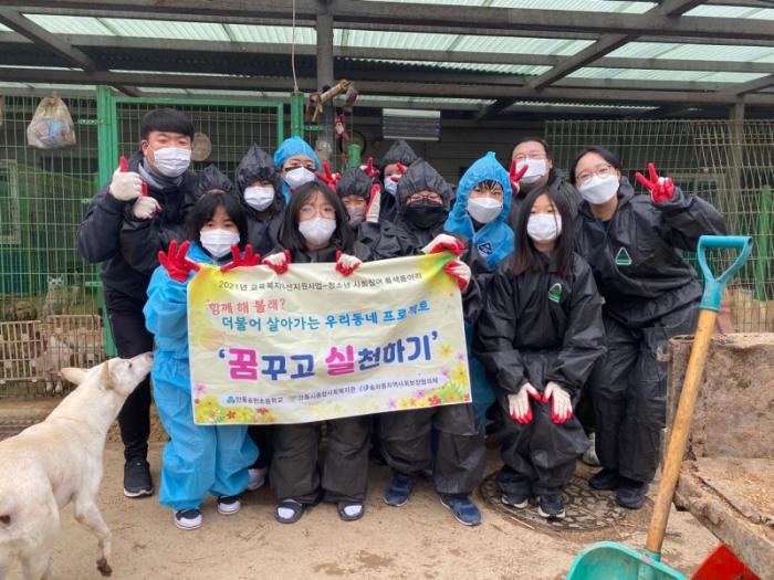 학생들은 유기견들이 지내는 환경을 눈으로 확인하고 보호소 관계자의 설명을 통해 어떤 경로로 유기 동물들이 이곳으로 오게 되었는지, 사람들이 동물보호를 위해서 어떤 노력을 하고 있는지에 대해서 들어보는 시간을 가졌으며, 오물 청소 및 환경정화 활동을 했다.