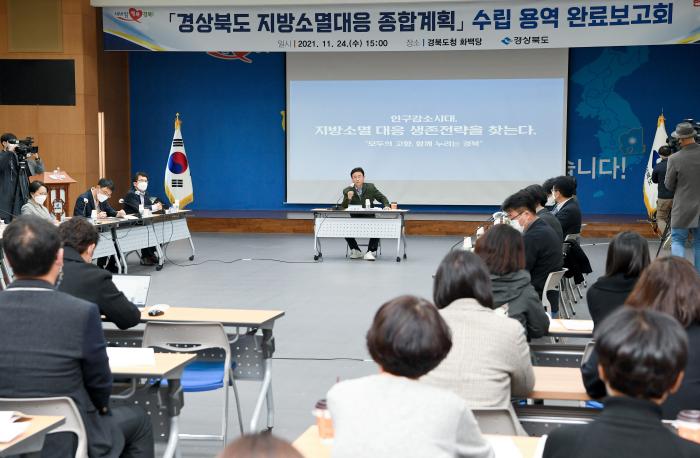 경북도는 24일 도청 화백당에서 ‘지방소멸대응 종합계획’연구용역 완료보고회를 개최하고, 자문위원과 시군이 모여 종합계획에 대해 토론하는 최종 점검의 자리를 마련했다.