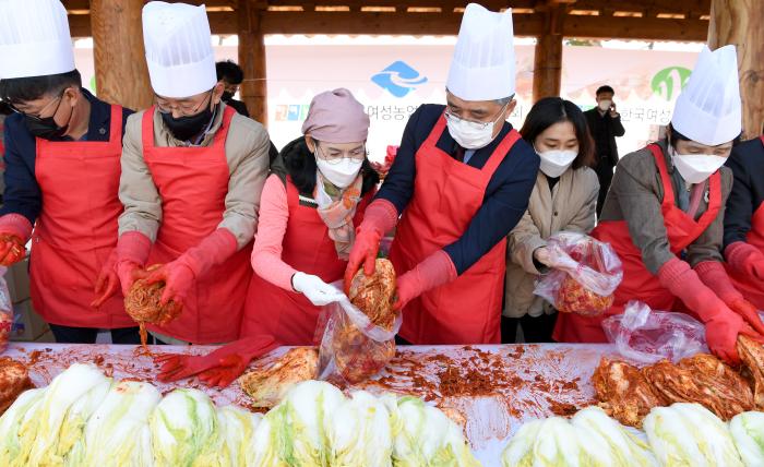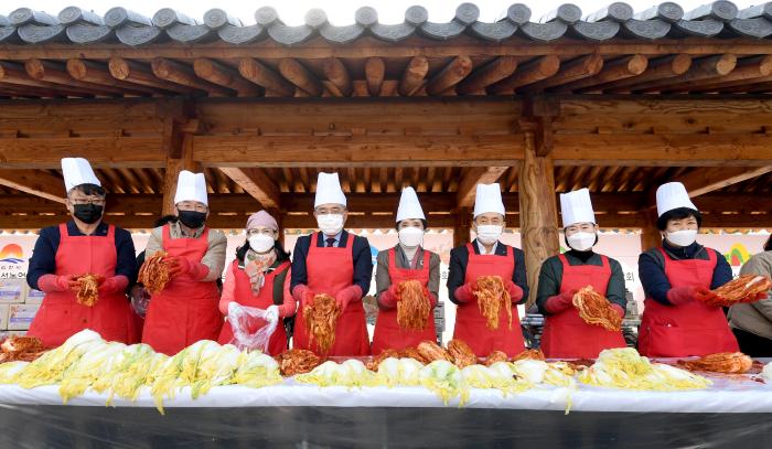경상북도는 25일 도청에서 한국여성농업인 경상북도연합회(회장 김미점) 주관으로 '김장 담그기 및 나눔 행사'를 개최했다.
